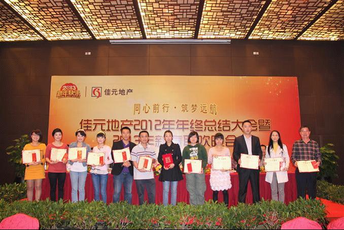 会上,佳元领导人对公司2012年所取得的成就给予了肯定,并对优秀团队、优秀部门管理者和优秀个人予以表彰。
