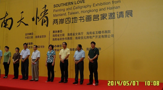 2014年5月7日上午10点,“南天情——两岸四地书画名家邀请展开幕式”在海南省博物馆隆重举行,海南省政协主席于迅、海南省政协副主席王应际和陈诚、中国文联副主席杨承至、海南文化界、新闻界等众多知名人士出席了本次活动,海南佳元地产总经理王水耀作为承办方领导和特别嘉宾也参加了开幕仪式。
