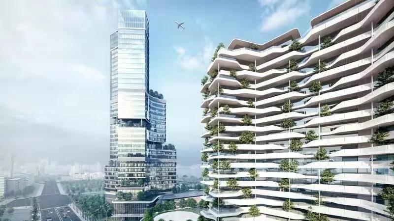 小区住宅首层架空,设置大堂、室内泳池、下沉庭院、高端会所、中心景观区、邻里商业街、老年人日间照料中心、小型多功能运动场地、社区服务站、文化活动站等;未来将配备星级酒店、5A智能写字楼、高端商业等。
