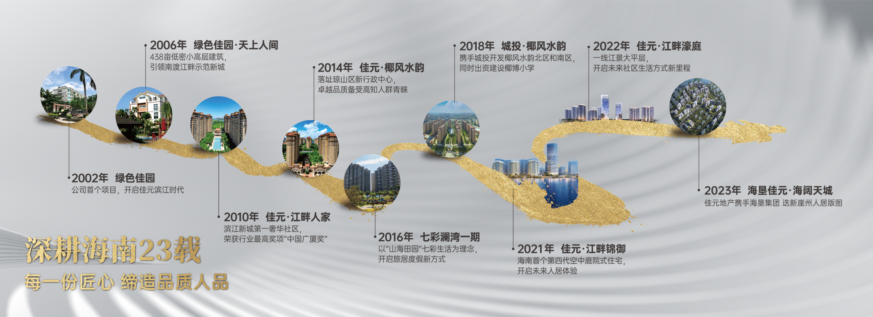 佳元·江畔锦御项目,是佳元地产成立十八年来,继绿色佳园、天上人间、江畔人家、椰风水韵、七彩澜湾一期之后的又一匠心传世之作!