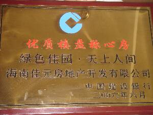 “绿色佳园·天上人间”2009年全国品质地产十大生态楼盘示范单位