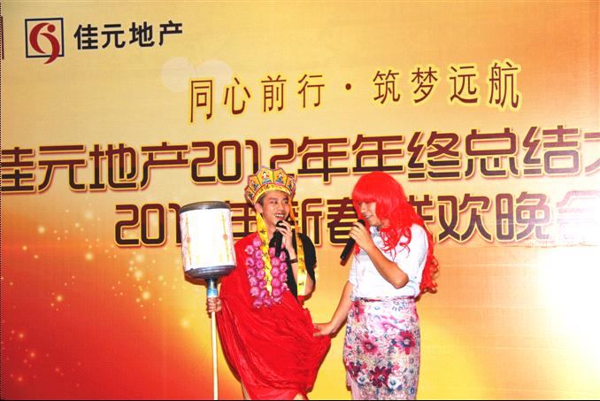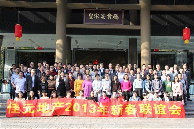 2013年2月1日,佳元地产2012年年终总结大会暨2013新春联欢晚会在鸿洲埃德瑞皇家园林酒店隆重举办。此次年终总结大会本着精简会议的精神,总经理王水耀先生简明扼要地回顾和总结了佳元地产的发展历程,畅想了佳元地产未来的美好前景,信心百倍!