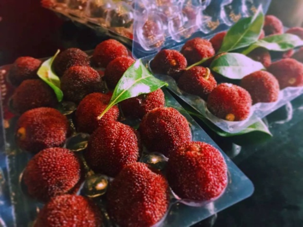 “嫣红迭绯挂青枝,欲品杨梅待熟时。”杨梅未熟时颜色青绿,极酸,熟后发红,越红越甜,红到发紫发黑,这样的杨梅便甜极。可惜,姹紫嫣红总难免短暂,杨梅季一年只有几天,杨梅之味就如刹那芳华。家人们可以做成杨梅酒,将夏日味道臻藏得久远一些。