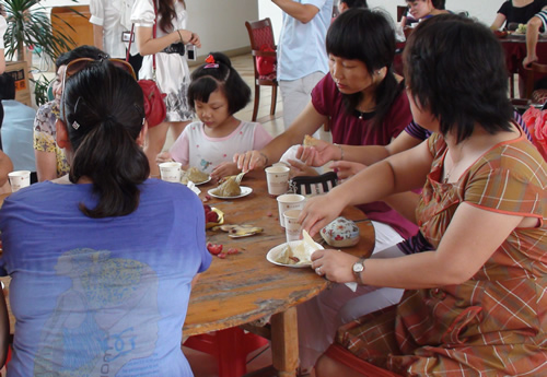 2010年6月14日,我公司为欢庆端午佳节及答谢老业主对企业的长期支持与厚爱,在二期项目绿色佳园•天上人间会所里举办了以“‘粽’情江畔,美满人家”为主题的端午节联谊会。百余名业主欢聚一堂、共度佳节,会所里飘荡着浓浓的“粽香”,业主们在品尝风味各异的粽子、水果、饮料、雄黄酒等美食同时,热忱交流着彼此事业、生活中的喜事、乐事,现场一片欢声笑语、其乐融融,仿若一个盛大的家庭Party.